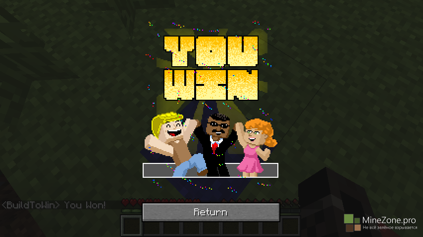Build To Win - модификация, добавляющая в игру новый игровой режим. Суть этого режима заключается в сборе материалов и строительстве различных построек настолько быстро, насколько это возможно. Можно соревноваться как на время, так и против других команд.