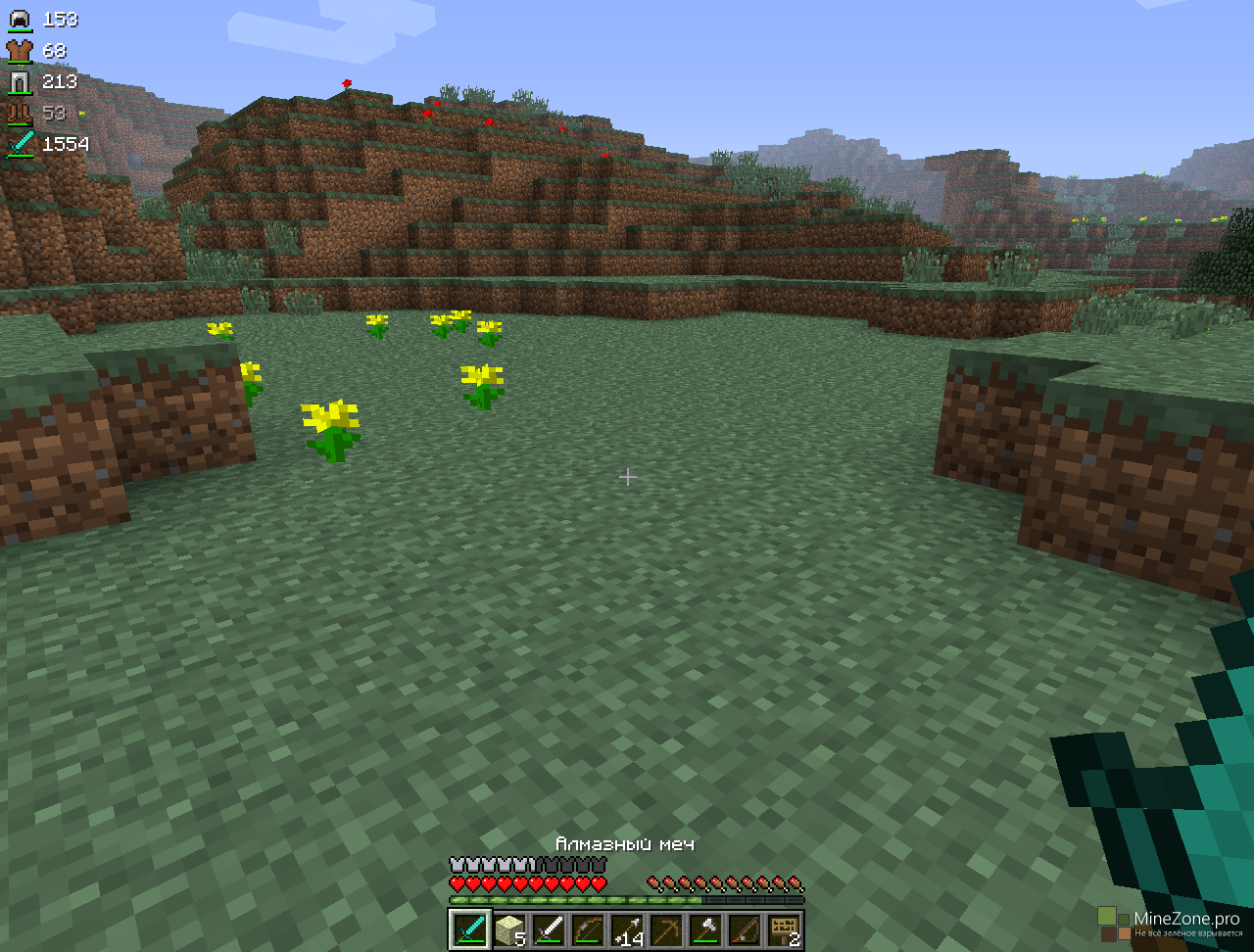 Особенности:- Показывает долговечность броней и удерживаемых вами предметов, таких как: блоки, инструменты, броня.