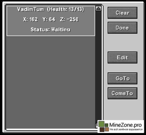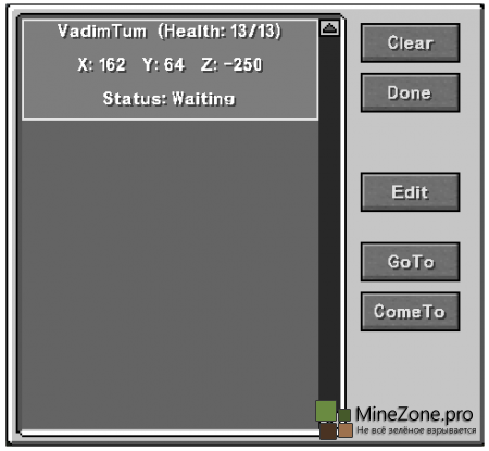 Так же если вы нажмёте ПКМ держа компас в руках откроется некое меню, в котором вы сможете настроить клона, узнать его местоположение.