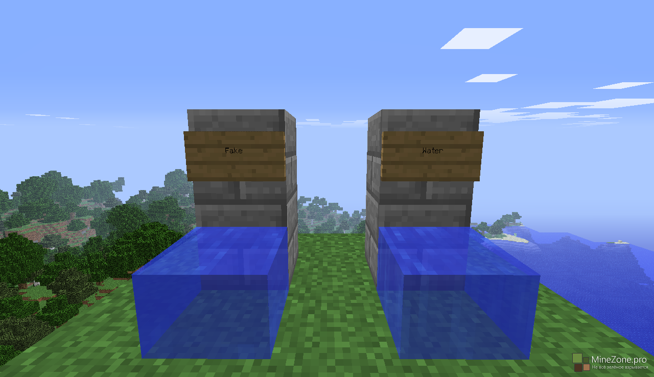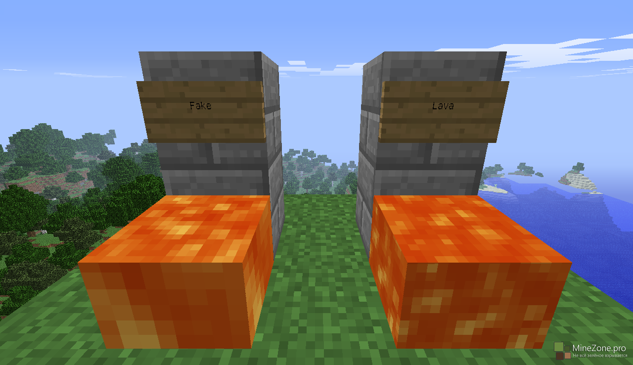 И правда. Эти блоки - сплошной обман. Вода не растекается, огонь не обжигает. Да и лава ведёт себя спокойно. Вы спросите - "как же заполучить эти чудо-блоки?" Ну для начала нужен верстак, а вот дальше: