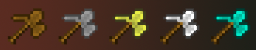 Hammer, снежок, уголь, деревянный меч, маринованный паучий глаз и каменная лопата.