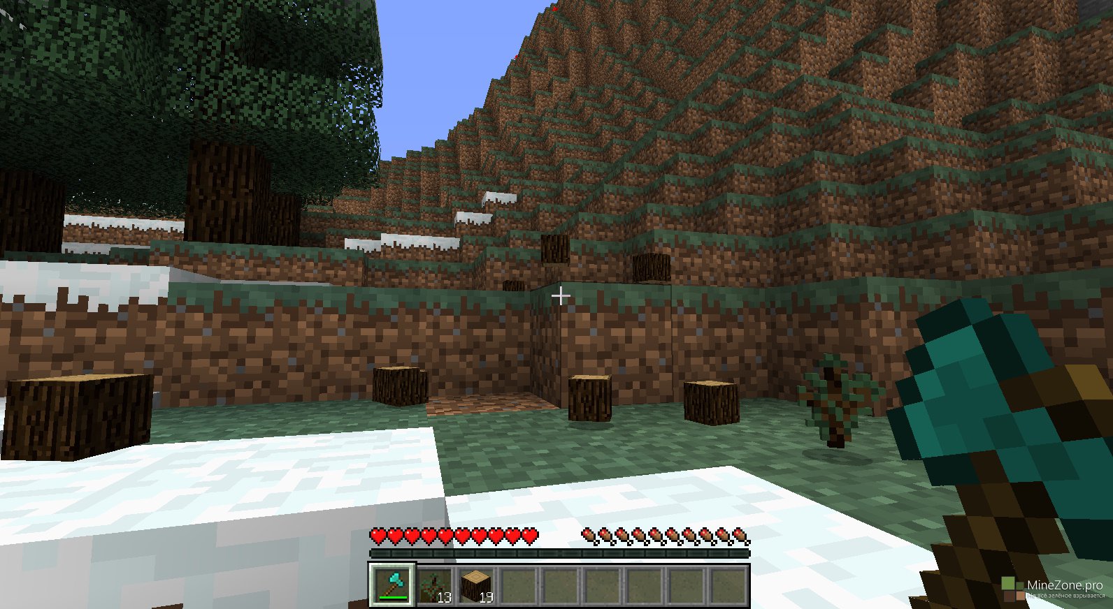 Что же делает этот мод, а он позволяет срубать дерево полностью, достаточно просто срубить нижний блок, при этом, так же тратится прочность, но за то не придется затрачивать много время на срубание всего дерева.