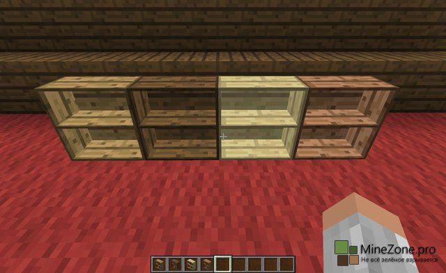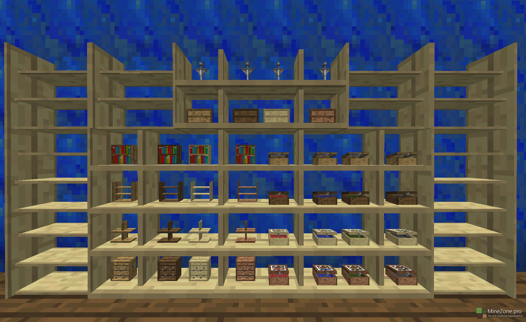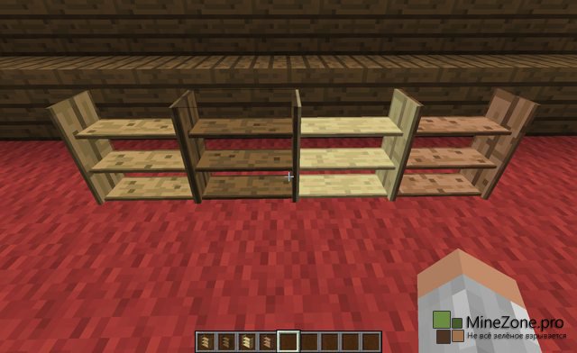 Может быть изготовлена с использованием одного из 4-х видов досок. Чтобы разместить зелье на полке, кликните ПКМ по полке с зельем в руке. Если полка заполнена, откроется GUI.