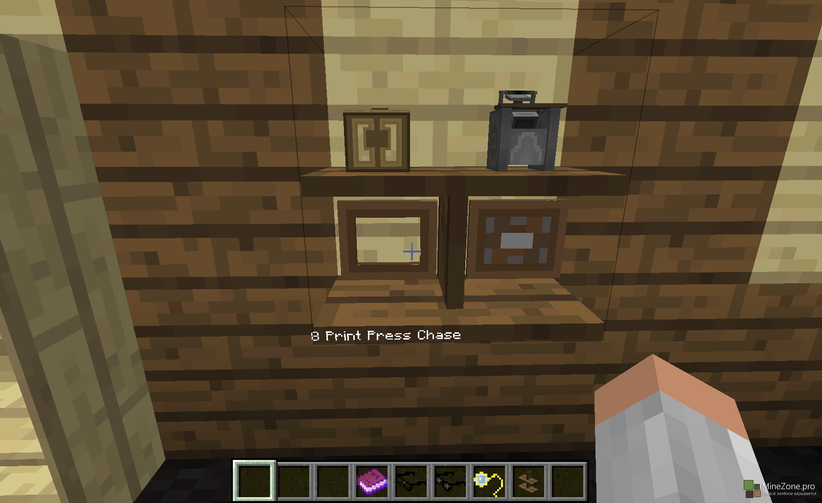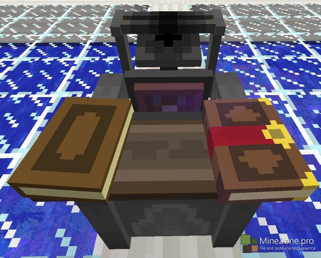 Печатный станок необходим для копирования как обычных, так и зачарованных книг. Полученную пластину помещаем в печатный станок с помощью ПКМ. Затем мы можем увидеть прикольную анимацию распечатки. После обработки, в правой части печатного станка появится зачарованная книга, которую вы вначале и превратили в плитку. Забирайте её и ждите, пока печатный станок распечатает ещё одну такую же книгу. Он будет печатать, пока не кончатся чернила. Чтобы пополнить запас чернил, кликните ПКМ с чернильным мешком в руке по станку.