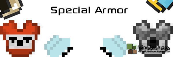 Special Armor - модификация, добавляющая в твою игру довольно большое разнообразие в выборе брони и остальной комплектации. Поклонник Леди Гаги, и хочешь такой же костюм из сырого мяса, как у неё? Всегда хотел сделать кольчужную броню без креатива и административных команд? Хочешь изучать глубины игрового океана, при том не опасаясь за количество кислорода? Без проблем! Всё это, и даже больше, есть в этой модификации!