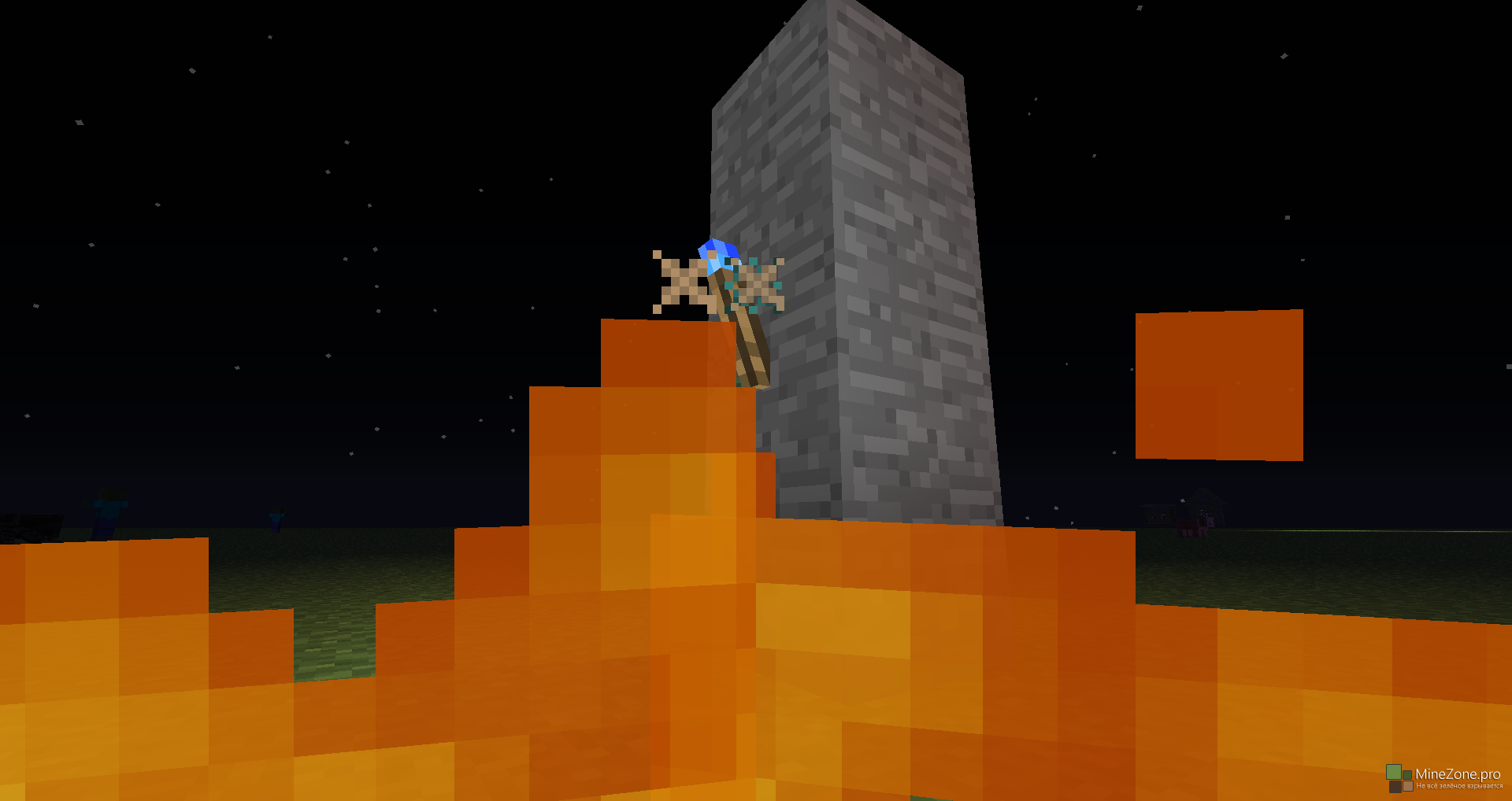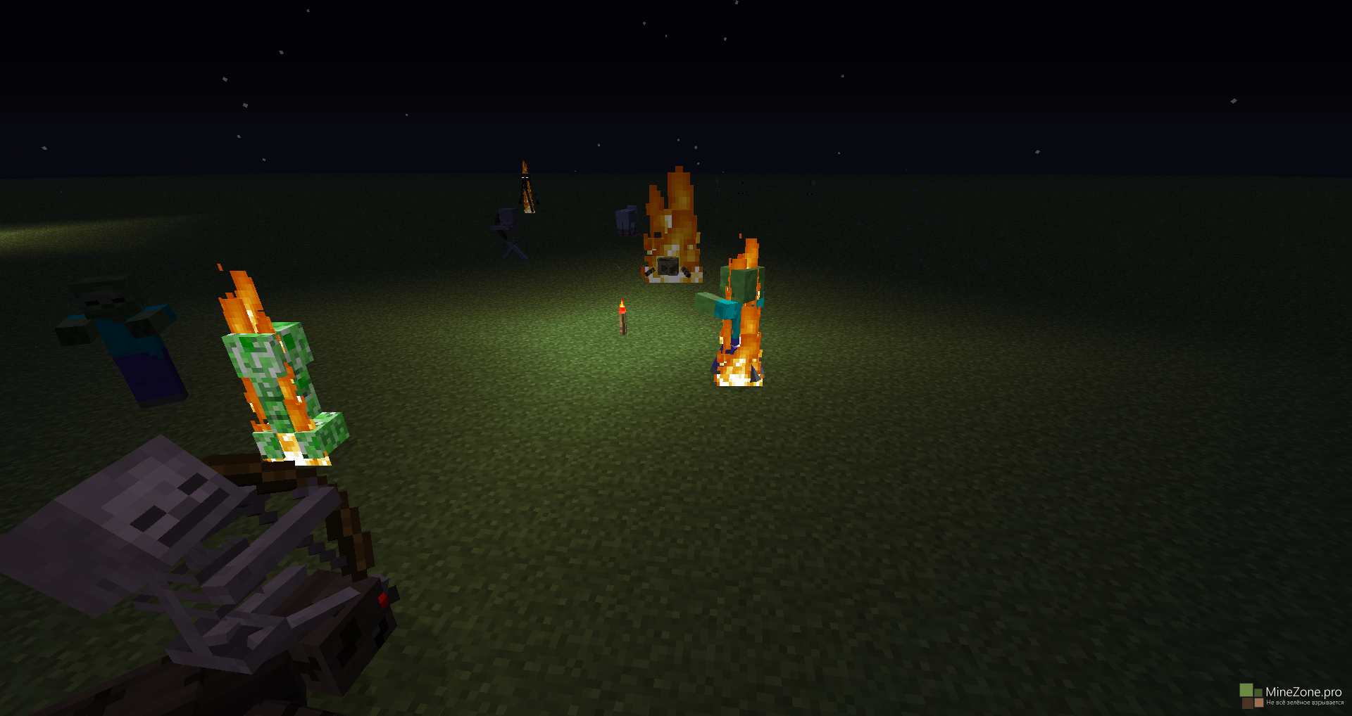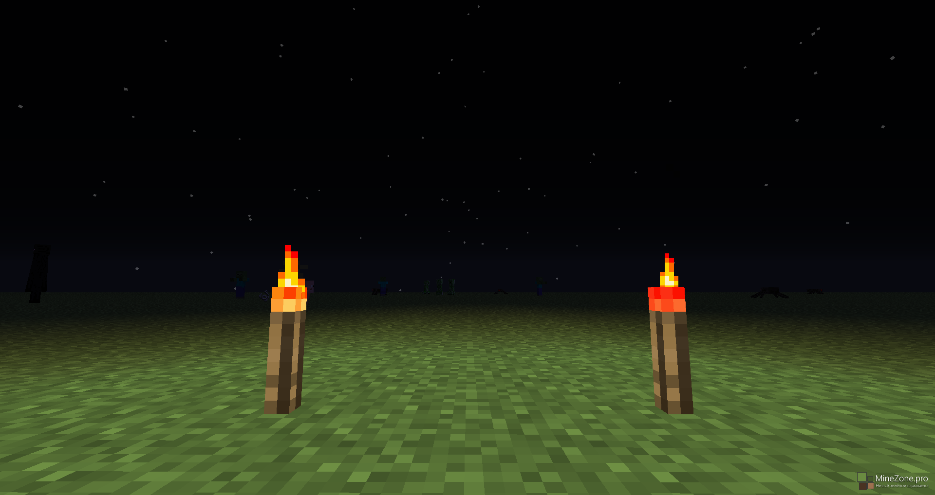 1. Данный факел обладает малым излучением, поэтому он может поджигать только скелетов и зомби