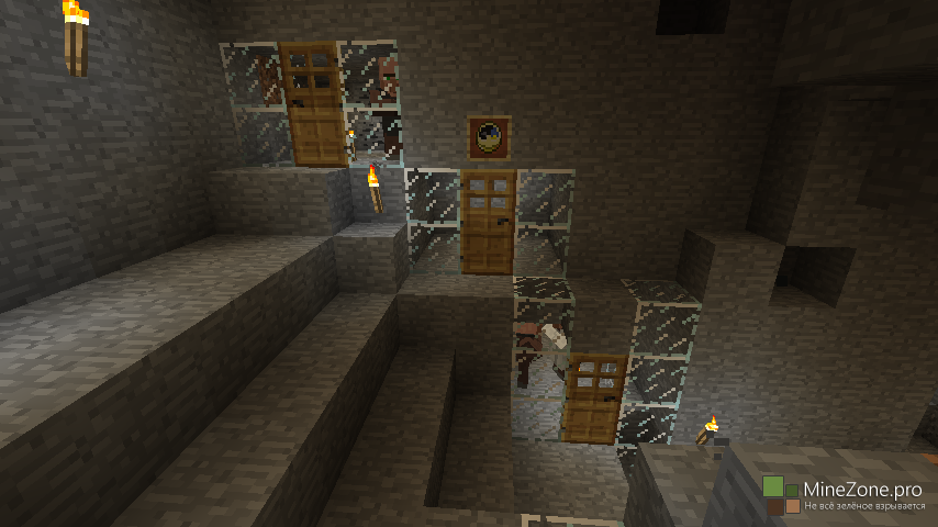 Жители могут селиться в дома под землёй. Если находится дверь на глубине как минимум 5 блоков от земли и на неё не будет попадать солнечный свет, то это будет подземным домом. Ночью, жители будут заходить за дверь с большим количеством света. Всё остальное так же, как и в обычной деревне