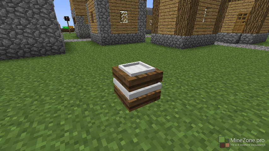 (Таверна является структурой, которая генерируется случайным образом в деревнях. Внутри вы найдете 2 бочки, 2 дистиллятора и один сундук со случайными предметами из мода)