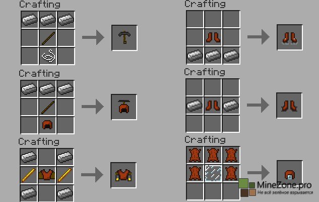 -ДжетПак и Шляпа вертолёт требуют уголь(любой), или редстоун, или блейзовый порошок, чтобы работать.