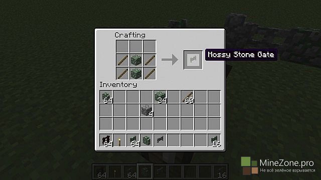 Мод добавляет 3 вида ворот, все они крепятся к забору из такого же материала, все открываются и рукой, и редстоуном, все ворота находятся в вкладке "Редстоун, в креативе.