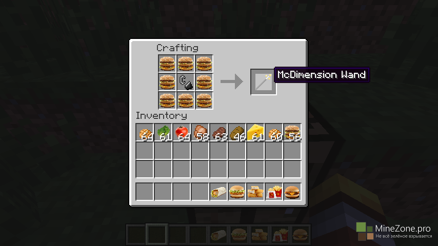 3. Чтобы попасть в измерение Макдональдс, возьмите волшебную палочку в креативе, затем постройте портал из золотых блоков (такой же, как и в ад, только из золотых блоков), и активируйте его палочкой.
