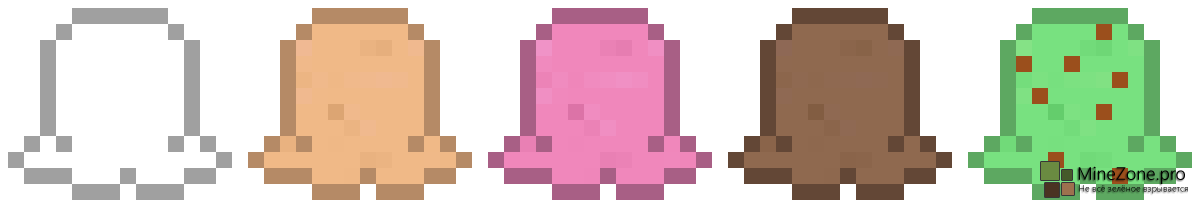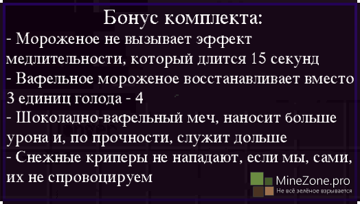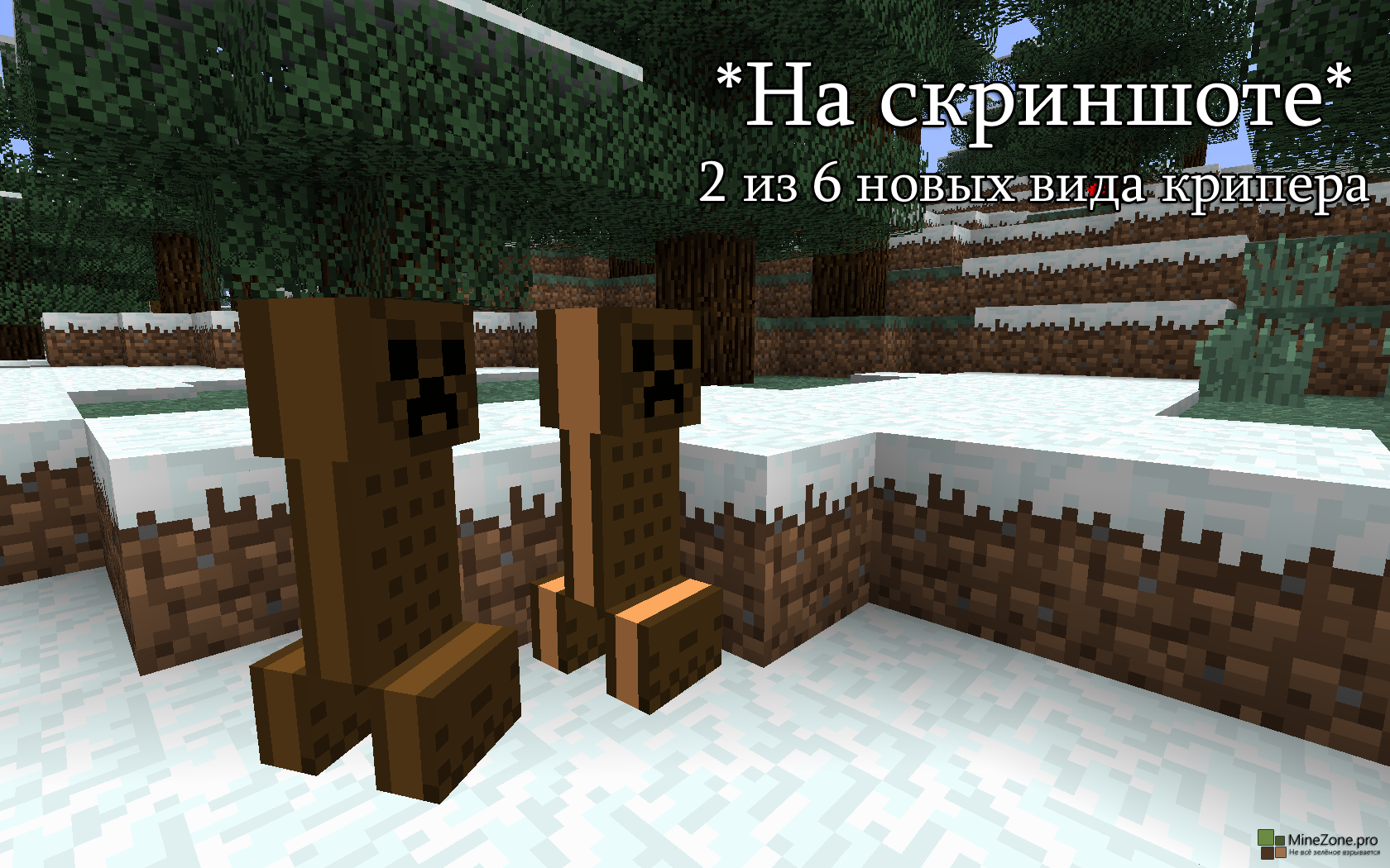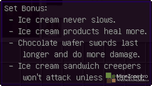 Мод, добавляющий 6 новых вида крипера, 5 видов мороженого, 6 видов вафельного мороженого, также блоки из мороженого, блоки из вафельного мороженого, броню из вафельного мороженого и так по-мелочам!