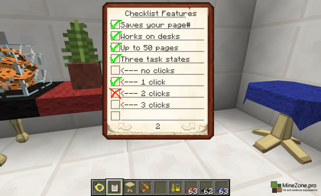 Работает подобно книге, только тут вы можете оставлять свои заметки, напоминания, составлять списки и планы, т.д. и т.п. Чтобы открыть блокнот, кликаем ПКМ с ним в руке. Выбираем нужную строку и пишем цель (на одной странице 9 строк, всего 50 страниц). Вы так же можете пометить состояние цели, выполнена/не выполнена кликом ПКМ по квадратику рядом спунктом 1/2 раза соответственно.