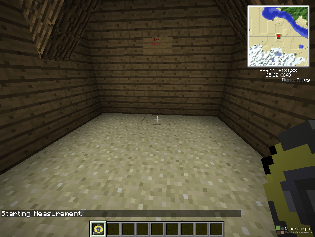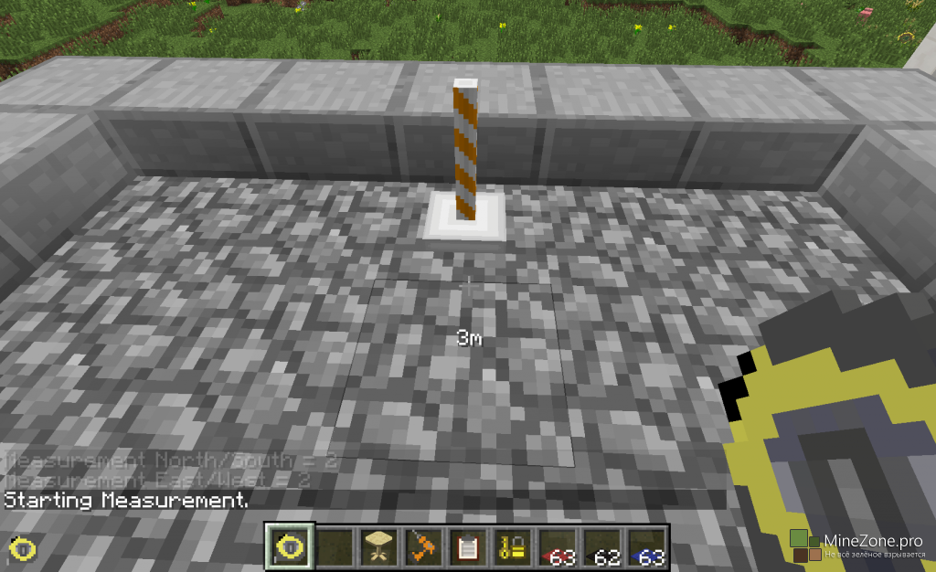 Теперь вы сможете легко понять, откуда вы начинали измерение. Клик ПКМ с рулеткой в руке по блоку создаст маячок на этом блоке, который будет свидетельствовать о том, что точка начала измерения именно тут. Маячок нельзя добыть и скрафтить.