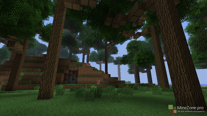 Гигантские, поистине гигантские деревья можно будет увидеть после установки этого мода. Ранее небольшой лес превратится в огромный, необъятный. Корни деревьев будут уходить глубоко в землю, древесный ствол потянется к небесам, о кроне и говорить-то нечего. В общем, надеюсь, мод позволит вооплотить десятки креативных идей в MineCraft, вы сможете выживать на деревьях, строить на них эпичные дома, всё, о чём мечтали. Хотя, какой смысл мне что-то объяснять, смотрим скриншоты: