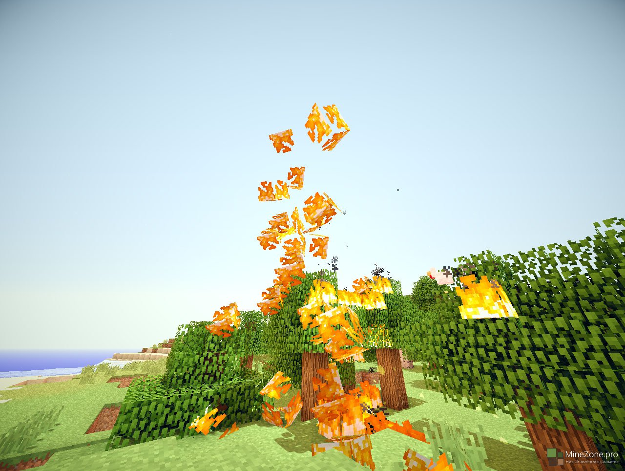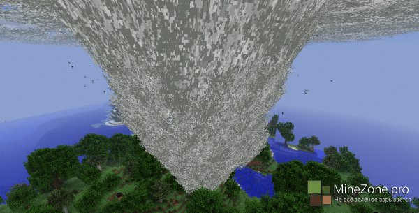Теперь в вашей игре будет дуть ветер, иногда стихая, иногда усиливаясь. Так же взависимости от скорости ветра с деревьёв будут падать листья. Если вы видите, что ветер усиливается (можно понять по количеству листьев, сорванных ветром с деревьев и по звуку), то немедленно прячьтесь в надёжное убежище, лучше всего под землю, ибо есть высокий шанс образования торнадо. Кстати, вы так же можете узнать погоду по воде: если в море/океане/озере бушуют волны, значит скоро образуется торнадо.