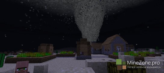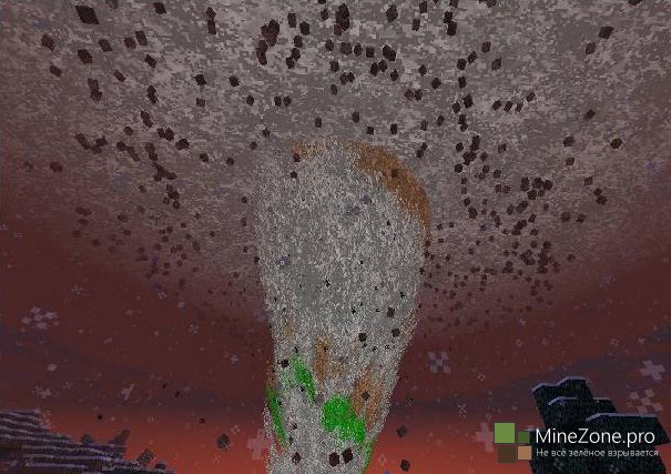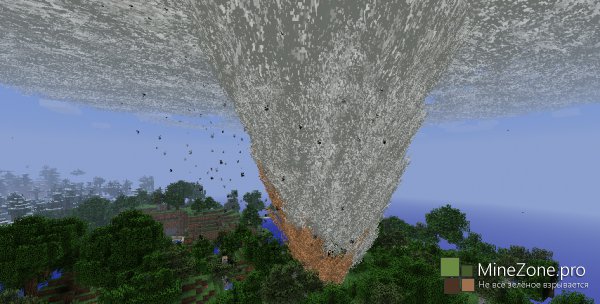 Если вы всё же не успели скрыться, вам придётся воочию узреть буйство стихии, способноё снести всё, что встаёт на пути. Торнадо будет двигаться в одном направлении, попутно вырывая куски земли и закручивая их в своём безумном танце! Будьте осторожны: не попадайтесь на пути движения торнадо, иначе оно прихватит вас с собой. Если вам хочется торнадо, но оно всё никак не возникает, вы можете скрафтить его собственноручно, крафт смотрите ниже.