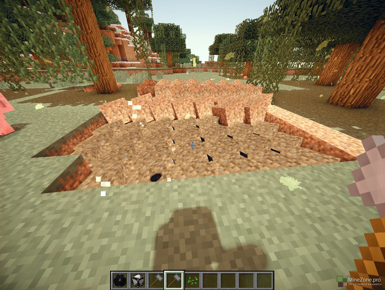 Кликом ПКМ этот молот пробьёт в земле дыру так, чтобы от её начала до конца вели ступеньки