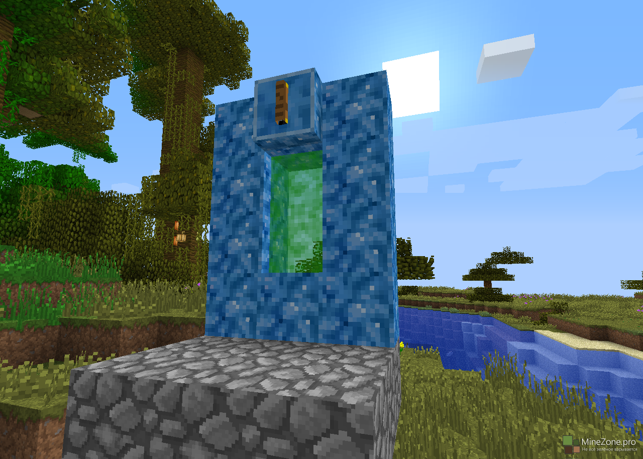 В эпохах с параметром Кристаллы (Crystals) можно найти синие кристаллы. Их можно добыть руками или киркой. Из таких кристаллов можно сделать портал, причём его можно делать любого размера (Хотя не стоит экспериментировать и делать очень большие рамки порталов. Возможна такая проблема, что перестанет загружаться карта.) и не обязательно прямоугольного. Но следует соблюдать несколько условий, для того чтобы портал работал. Рамка портала должна находиться в одной плоскости и быть замкнутой. Угловые блоки ставить не обязательно. Внутри рамки не должно быть лишних блоков, только воздух.