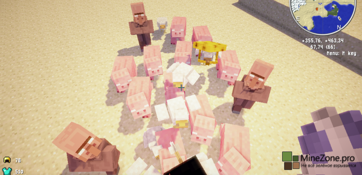Если вы призовёте его, возле него будут спауниться курицы, свиньи, коровы - херобрины (ещё спаунятся странные жители-херобрины).