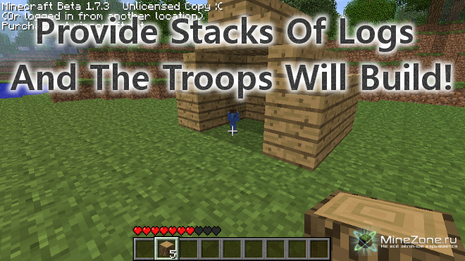 Глиняный солдат теперь может собрать в один стек не менее 5 бревен. Слышите? Ни одино бревно, и не два бревна. В стек, по крайней мере, будет вмещаться пять бревен или больше, до 20 журналов. Что они делают с этими бревнами? Строят дома, конечно! Существует три различных вида зданий, которые они могут построить. 5 бревен создают небольшую обитель, 10 бровен создает много жизненного пространства, а из 20 бревен будет построена сказочная крепость (с бонусным сундуком и с палочками внутри). Чтобы построить эти дома, должно быть много свободного пространства вокруг и никаких других глиняных парней вокруг. К сожалению, глиняный солдат, который держит бревно, в основном, теряет способность бороться, карабкаться по стенам и даже покататься на лошадях. Но если на них нападают, они выбросят свои журналы и будут защищать себя.
