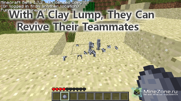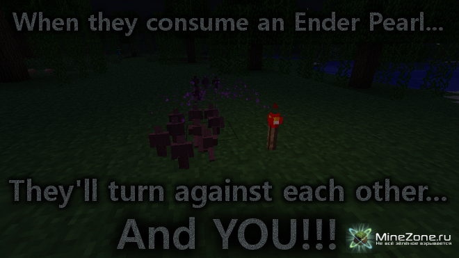 И именно тогда, когда вы думали, мод просто не может быть более интенсивным ... Там есть ЗОМБИ! ... Или ВАМПИРЫ! ... Или ИНОСТРАНЦЫ! Действительно, я сам не знаю, кто они на самом деле, но они испорченные и злые! Когда глиняный солдат берет жемчужину эндермана, он заражается страшной болезнью. Для зараженного солдата ничего не имеет значения, за исключением распространения этой же болезни на других солдат. Когда зараженный солдат убивает другого невинного солдата, он не умирает... Он воскресает и становится настоящим злом, и присоединяется к остальным зараженным солдатам! Не имеет значения, за какую команду он раньше сражался. Любой не зараженный солдат - враг. Вы слышите их пронзительные крики агонии, они уходят. Но они возвращаются... возвращаются и идут на ВАС!