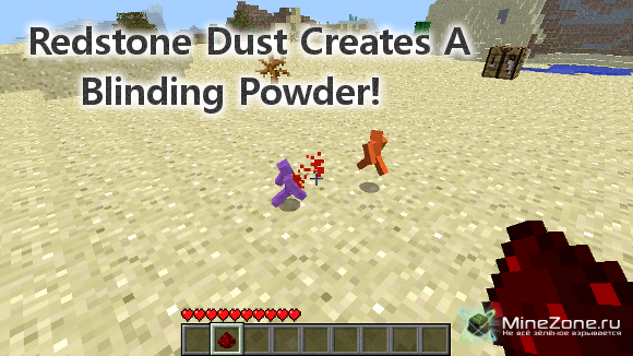 Как будто острых палочек не хватало, теперь есть еще более лучший способ борьбы с грязными! Рэдстоуновая пыль действительно хороша только в двух вещах - электризации вашего мира в Minecraft и пронзании как жалом глаз людей, рэдстоун действует еще хуже, чем результат производства на соляной фабрике. Если вы дадите вашим солдатам горстку рэдстоун пыли, они будут бросать её прямо в глаза своим противникам и временно ослеплять их. Ослепленные солдаты полностью беззащитны и не в состоянии сражаться! Пыль можно использовать два раза, но если бы я был на вашем месте, я бы взял с собой пару очков на всякий случай, вдруг пыль случайно бросят в ваши глаза.
