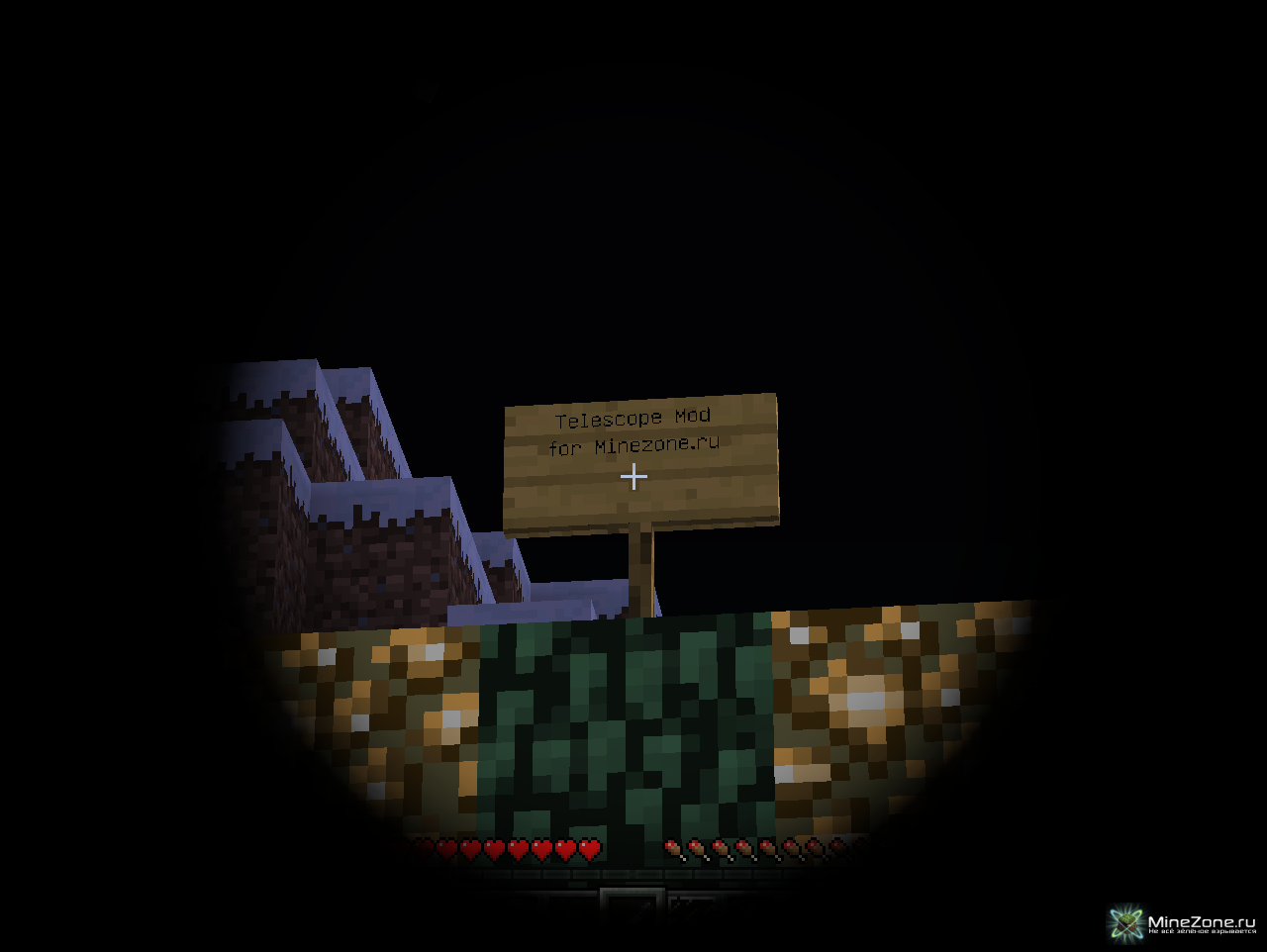 Уже по названию понятно, что добавляет мод, а именно телескоп. Конечно, в дольнее плаванье с ним не отправиться, но можно наблюдать за своими фермами, ловушками, постройками из далека:) Табличка на скриншоте находилась в 30 блоках от меня.