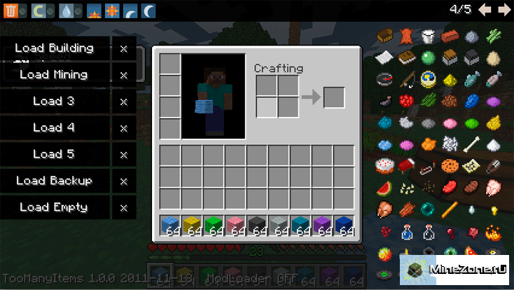 TooManyItems совсем не конфликтует с модами и для него не нужен ModLoader.