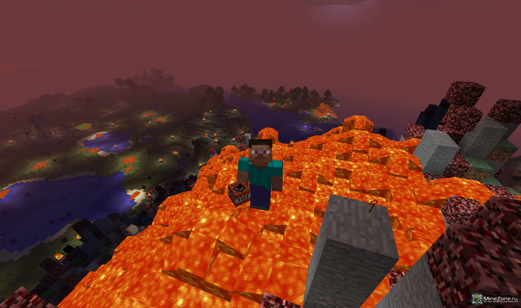 Мод добавляет в игру вулканы, которые разрушают все на своем пути.