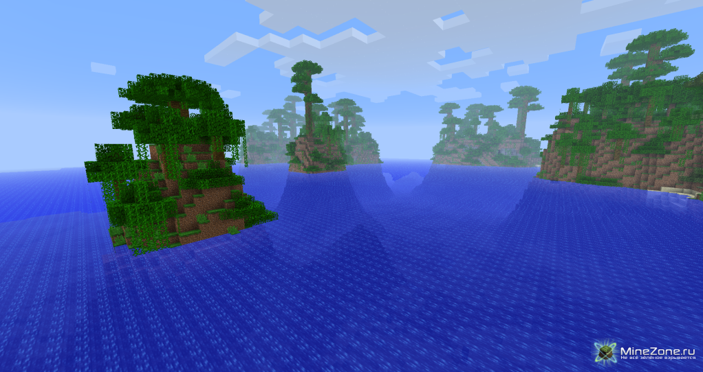 С этим модом измениться генератор карт. Теперь будут генерироваться океан и островама: маленькие, большие, низкие и высокие.