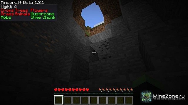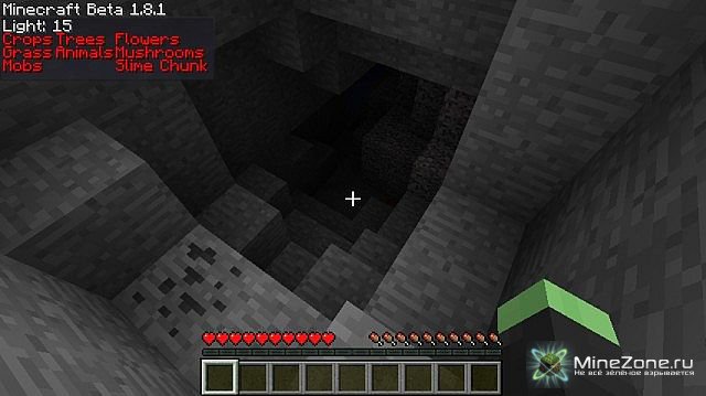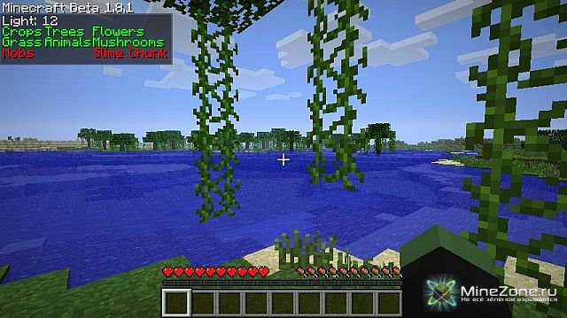 После установки этого мода, у вас в левом верхнем углу экрана будет высвечиваться информация, а именно: Какой вокруг уровень освещения, и мобы, которые могут здесь спавниться.