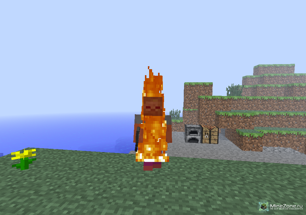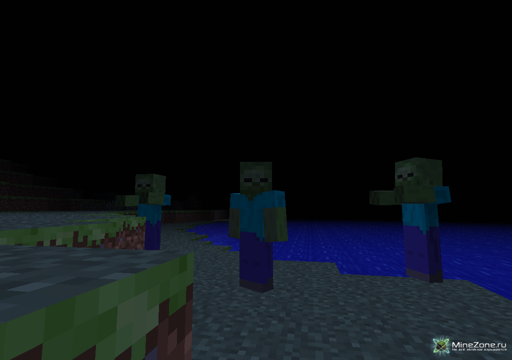 С этим модом Вы будете играть в роли зомби. Теперь Вы будете сгорать при свете дня, все мобы станут дружественными по отношению к Вам (пока вы не нападете на них), за исключением криперов, они все так же будут взрываться, завидев Вас рядом. Жители при убийстве будут дропать железные слитки, големы станут относиться по отношению к Вам враждебно.