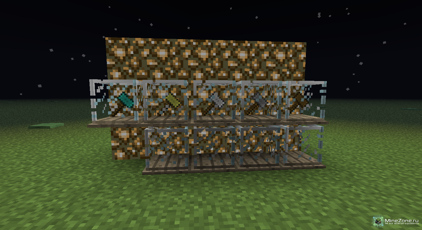 Теперь обычные факелы могут через некоторое время просто погаснуть, зажечь их можно с помощью зажигалки. А так называемые Glowstone факелы будут служить вечно. Также факелы будут гореть в руке.