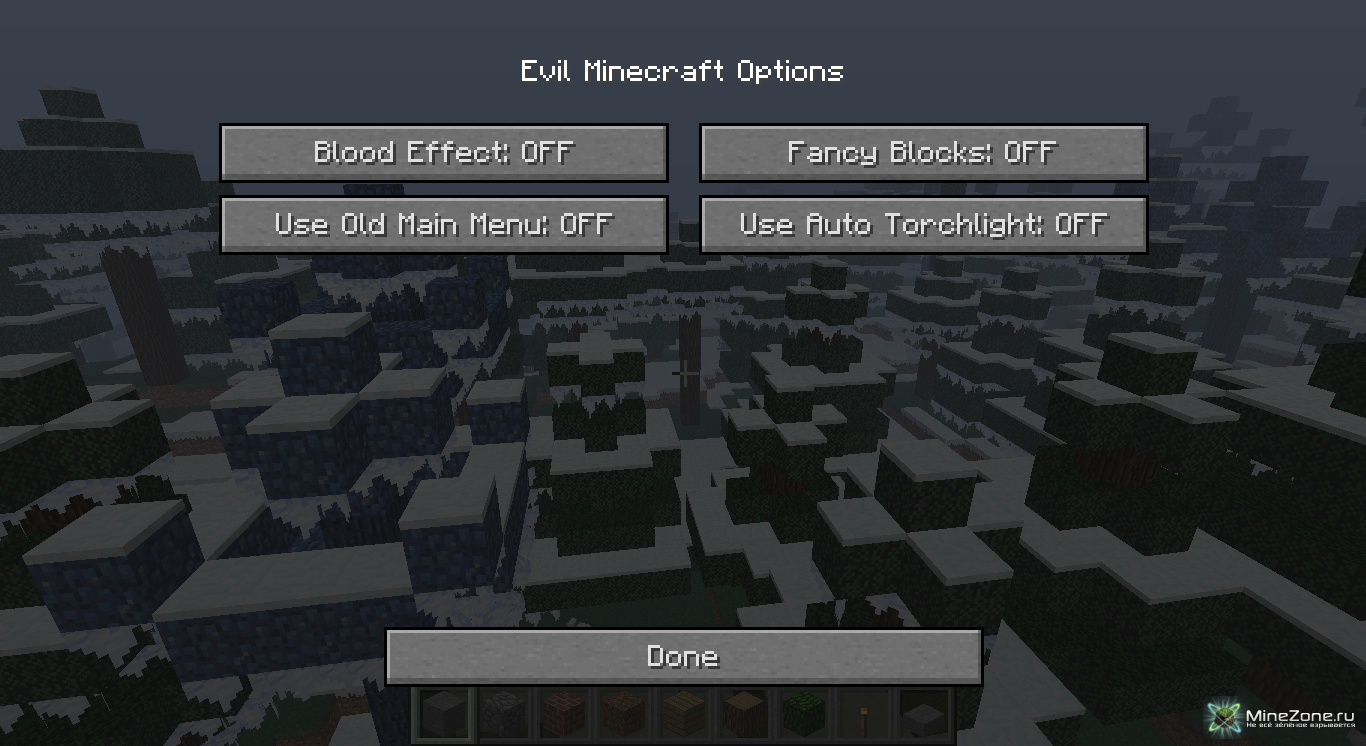 EvilMinecraft- это мод, кардинально меняющий механику игры. Также он добавляет новые предметы, новых мобов и даже кровь!