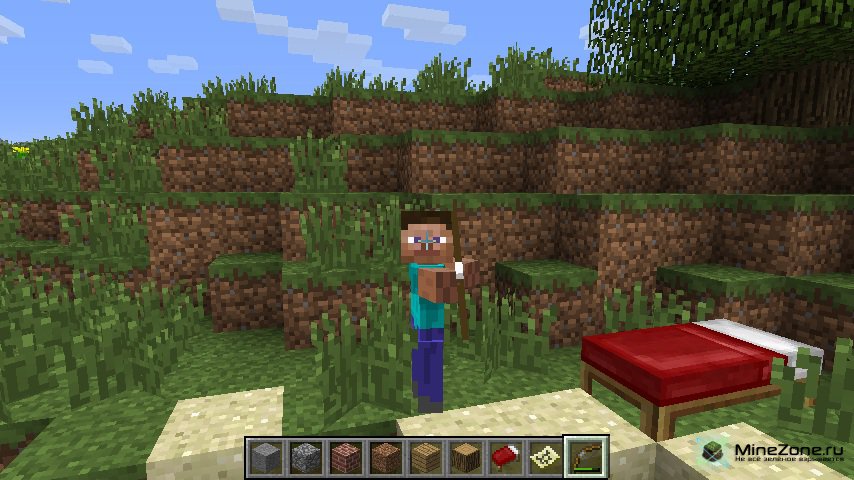 С этим модом, играя от первого лица, Вы сможете увидеть свои ноги, изменится весь вид инструментов (теперь Вы будете видеть не весь инструмент, а лишь его кончик), вид карты станет лучше, изменится вид стрельбы из лука.