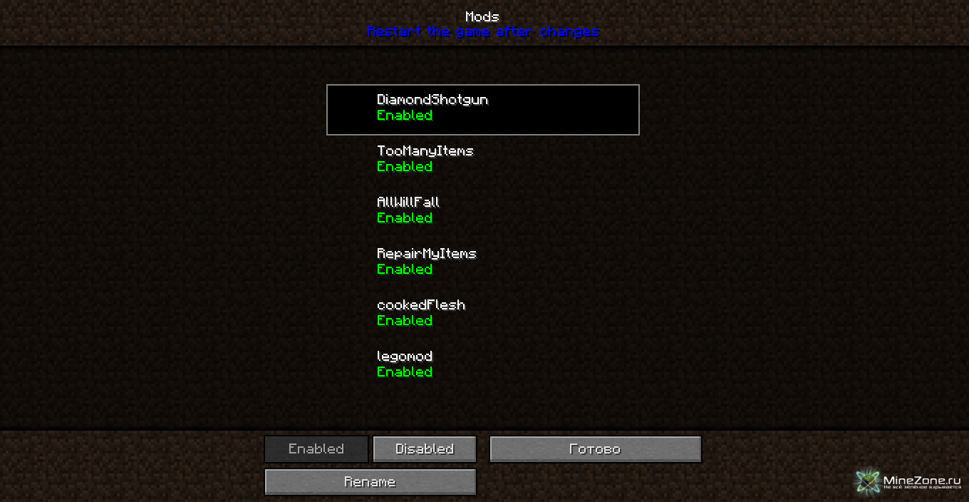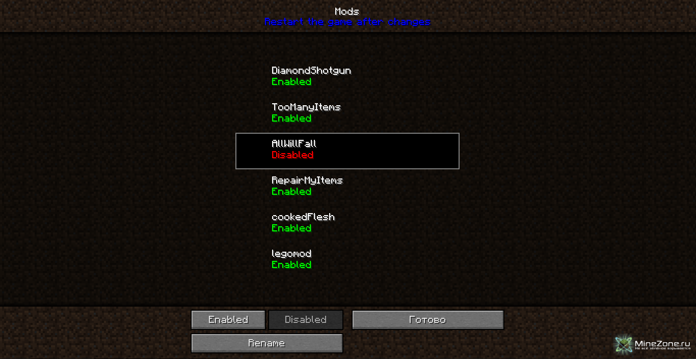Теперь можно включать и отключать моды