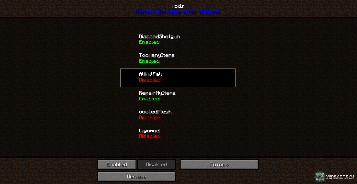 Так же моды можно переименовывать