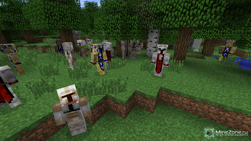 Этот мод добавляет частичку средневековья. Он добавляет королевскую броню(см. выше). Теперь на карте можно встретить от стога сена и шахты до замка. Так же добавлены шатры(полосатый блок и тык правой кнопкой). Добавлен новые моб: рыцарь. Ходят