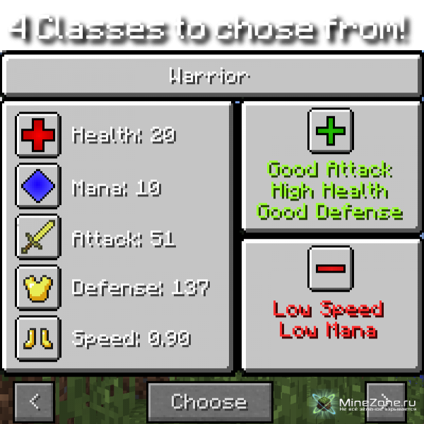 Вы можете выбрать один из 4ёх классов: Воин, Убийца, Маг, Огр. Все они имеют свои преимущества и недостатки.