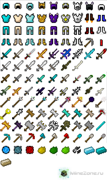 Мод The Legend Of Notch добавляет 3 вида руды: кобаль, титаниум и платину. Вы сможете сделать из них броню и инструменты.