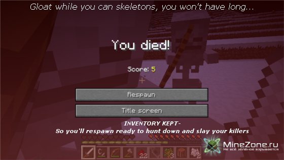 [1.3.1] Keep Items on Death Категория: Скачать / Моды для Minecraft Надоело что при смерти вещи постоянно теряются? И приходится их искать по всему миру(карте), тогда этот мод идет к вам! С ним все ваши вещи останутся после смерти!KeepItemsOnDeath1.3.1.zip [3.7 Kb] (cкачиваний: 734)
