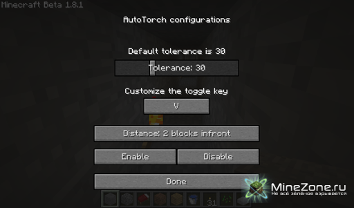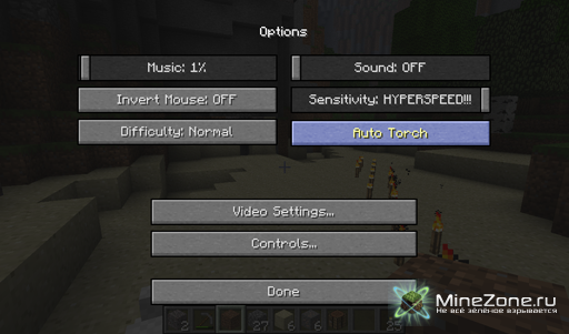 The AutoTorch Mod [1.3.2] Категория: Скачать / Моды для Minecraft Надоело каждые десять блоков ставить факел? Тогда этот мод именно для вас! Путем небольшой настройки можно добиться оптимального освещения и расхода факелов. Мод будет сам автоматически ставить факела.AutoTorch-1.3.1-V6.rar [8.96 Kb] (cкачиваний: 173)