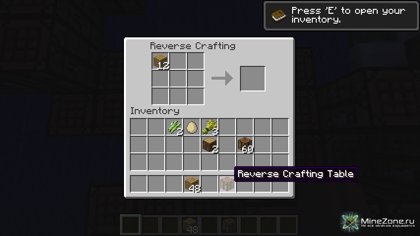 [1.3.2] Reverse Crafting Table Категория: Скачать / Моды для Minecraft Для начала этот мод добавит в игру верстак обратного крафта. Если в конечное окно крафта этого верстака положить абсолютно любую вещь (даже если эта вещь из мода) - вы получите все те же материалы, что и затратили на их создание! Крафт верстака обратного крафтаСкачать: serverclient.rar [13.64 Kb] (cкачиваний: 426)