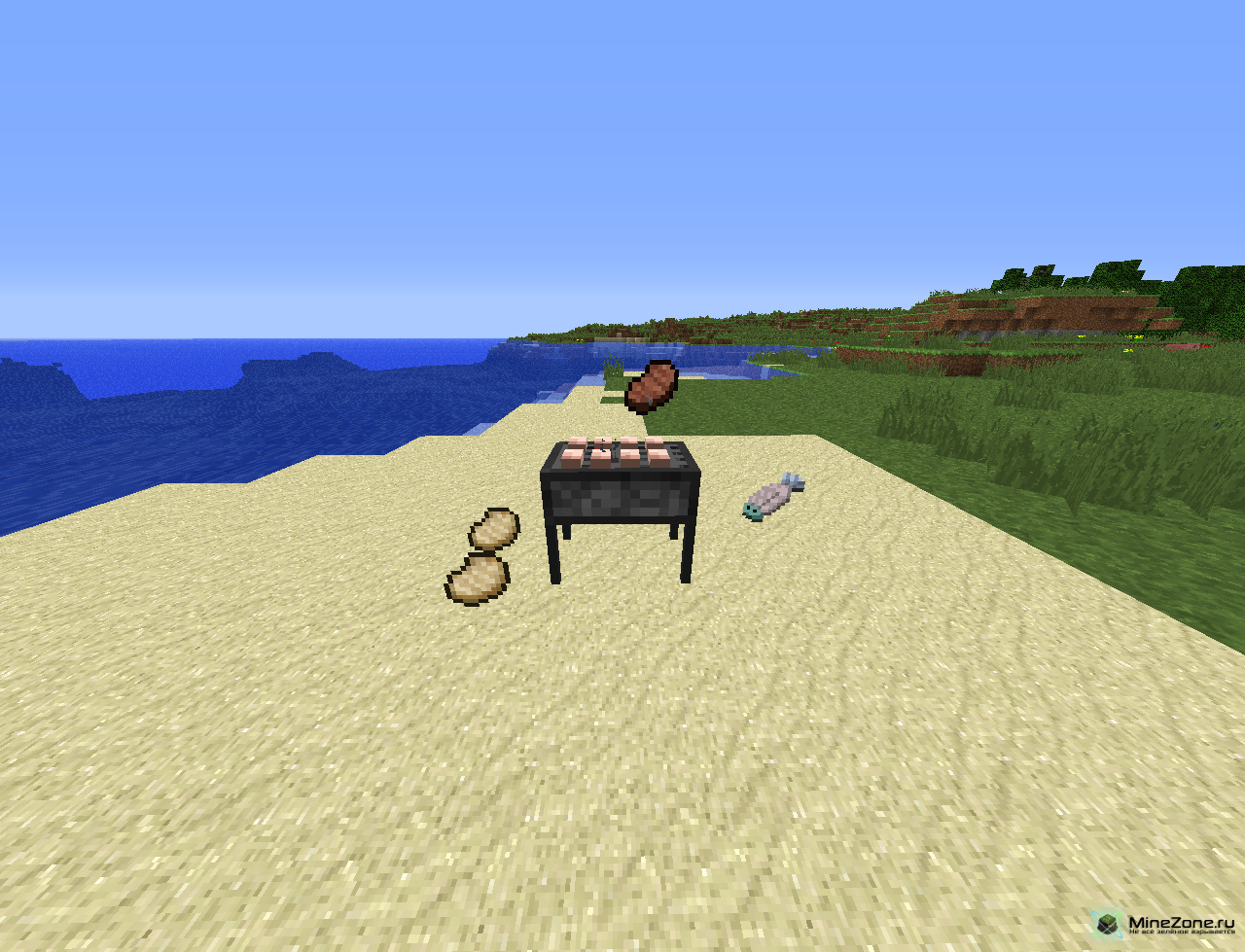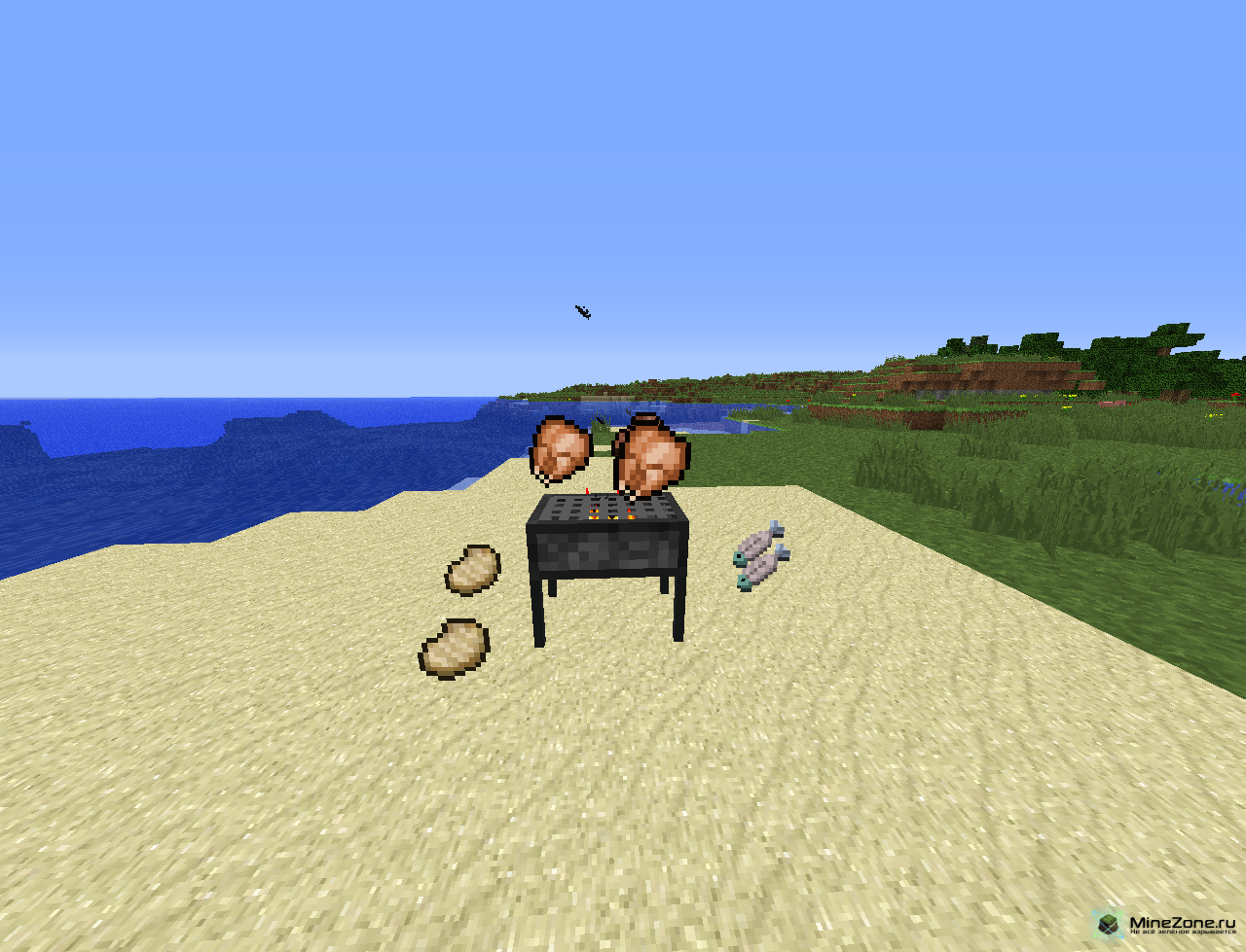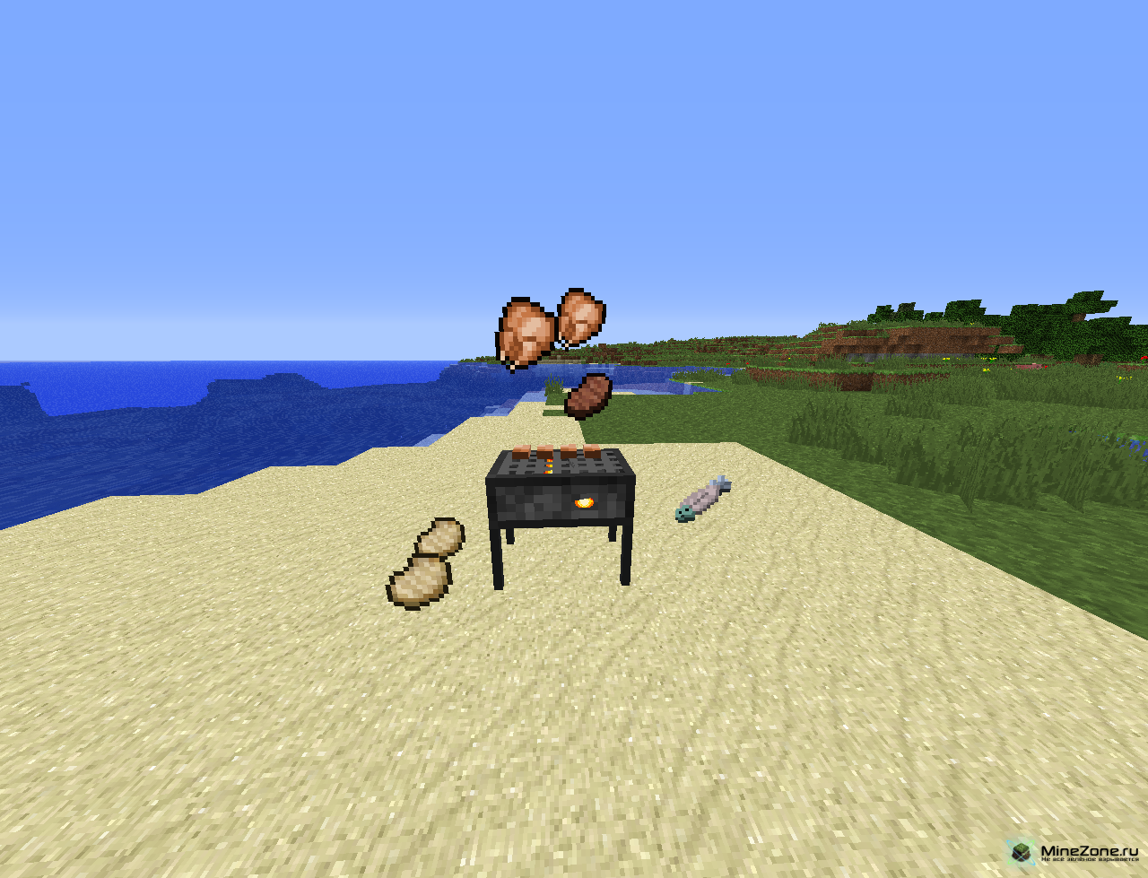 Закладываем древесный уголь, и сверху кладем любую сырую пищу ->