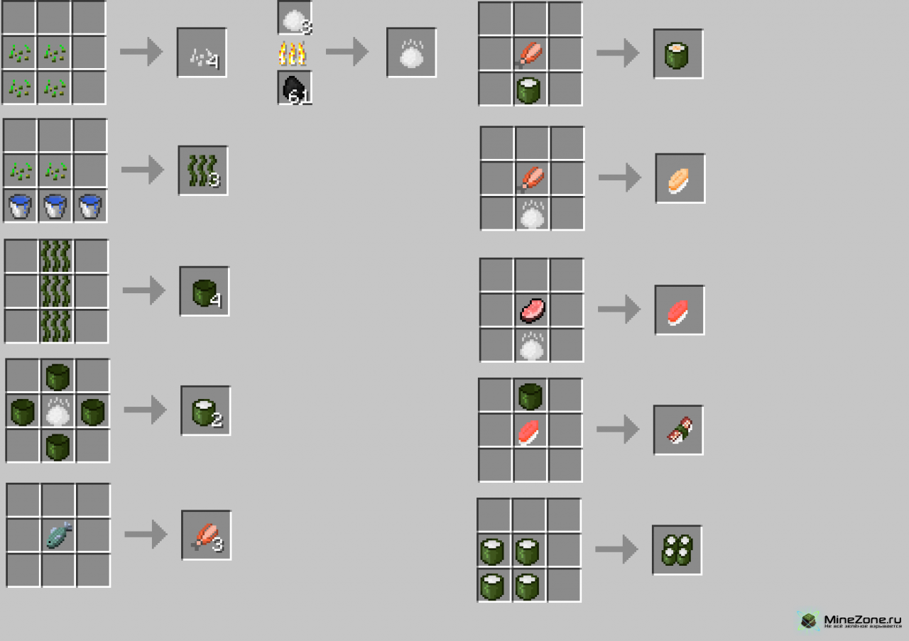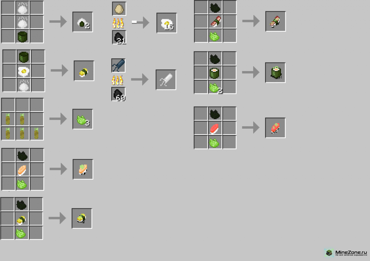 Мод держит в себе разнообразие японской кухни. В него добавлены суши, ролы, рис, яичница и многое другое!
