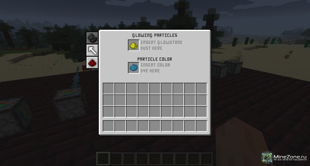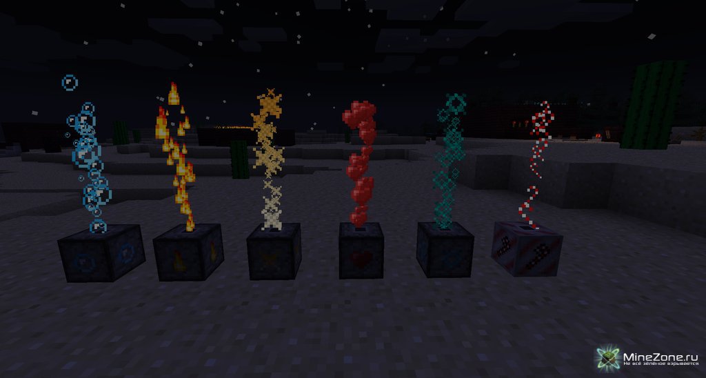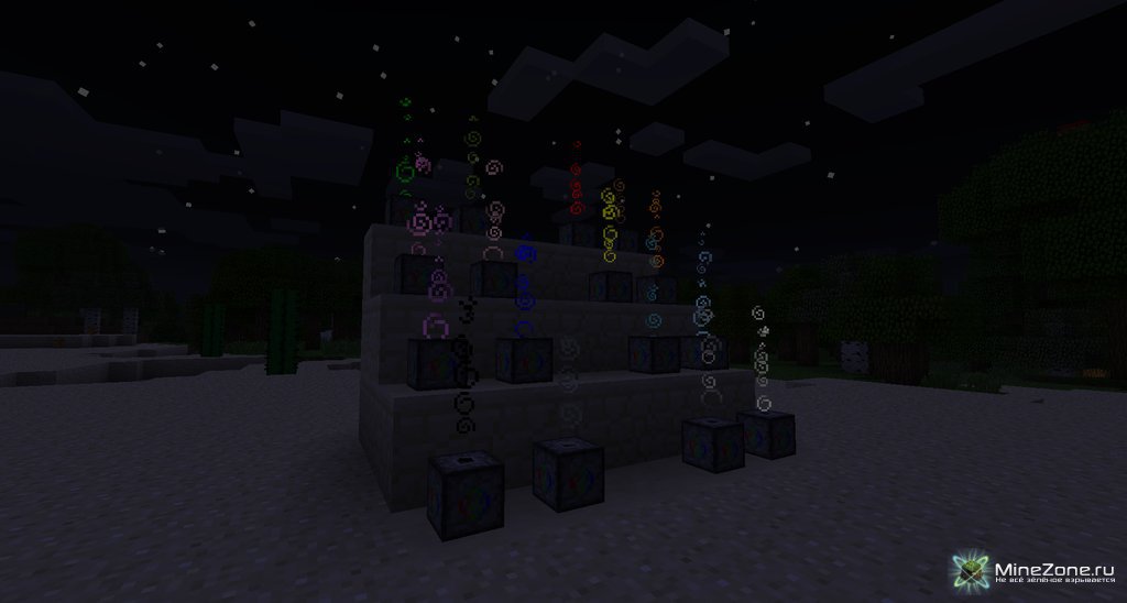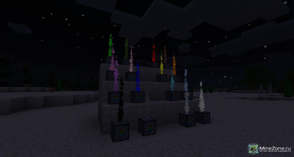 После того, как Вы скрафили блок, можно нажать ПКМ, положить в открывшееся окошко светопыль и затем блок будет светиться ночью. Также можно настроить высоту на которую будут подниматься частицы.