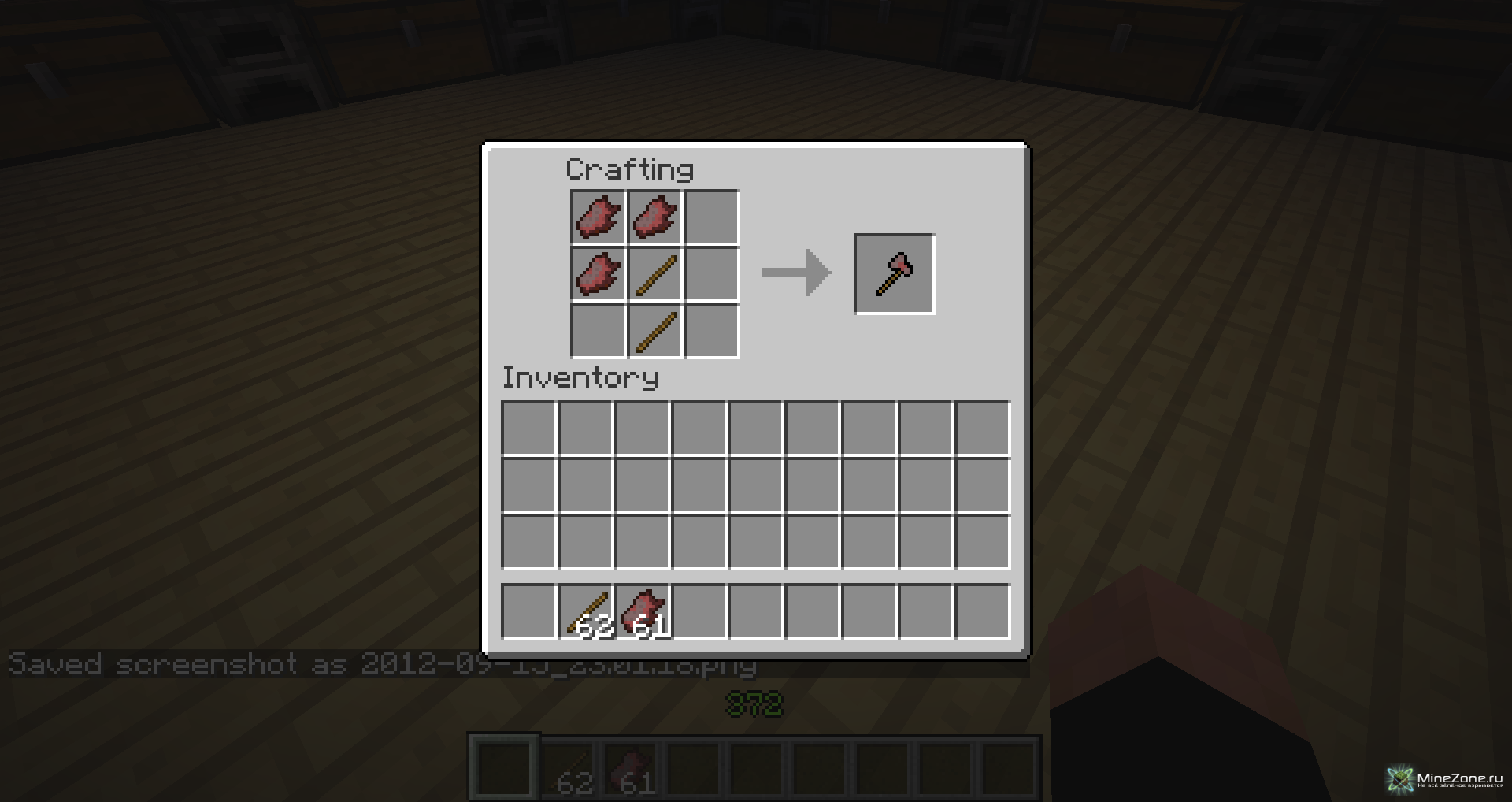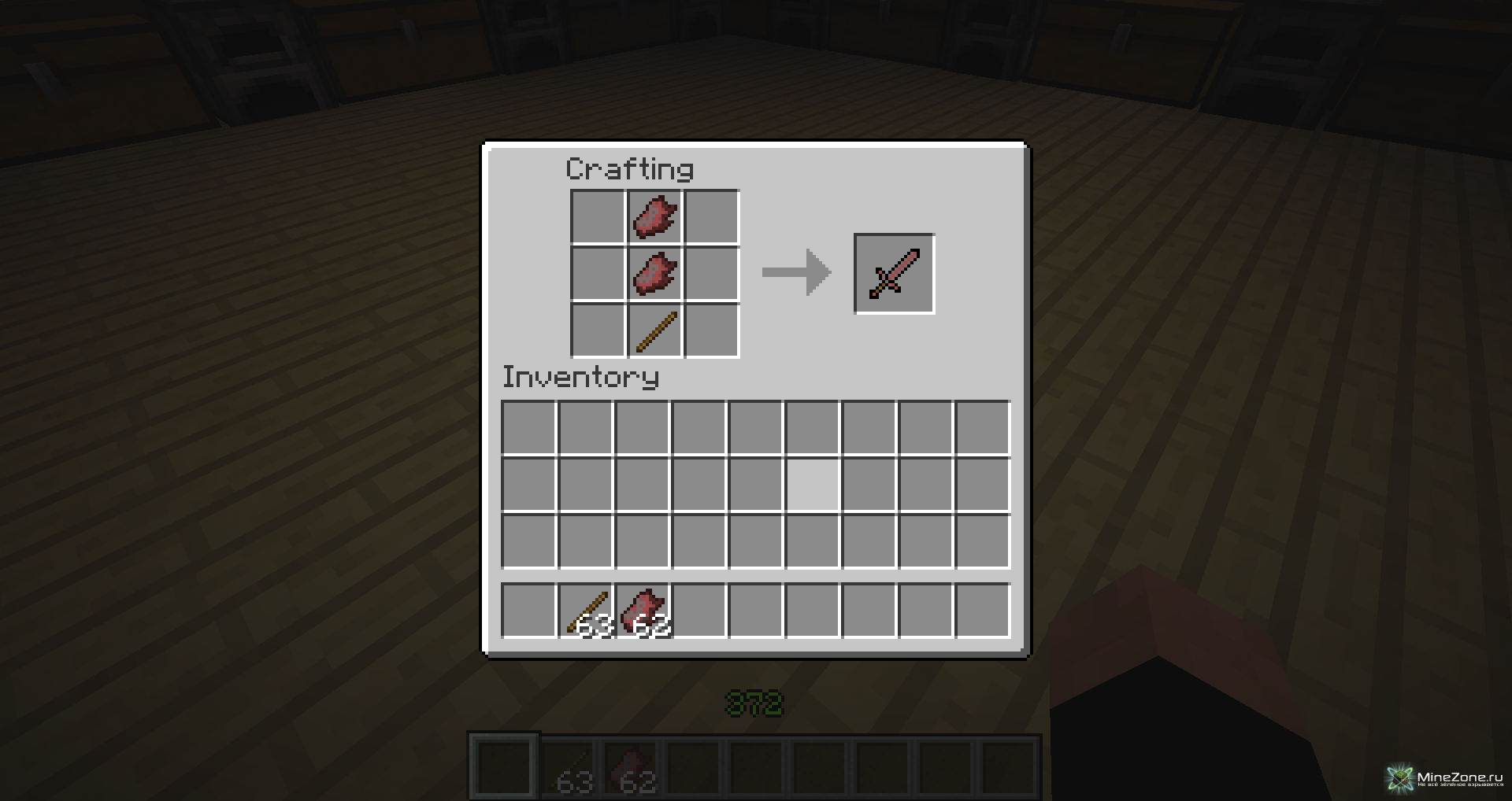 [1.3.2] The zombie meat mod Категория: Скачать / Моды для Minecraft У вас накапливалось много лишней плоти? Вам некуда было её девать, а выкидывать жалко? Данный мод решит эту проблему рецептыДля начала вам нужно сделать "приготовленную плоть", путем переплавки её в печке. Съев её, вы восстановите себе 2 шкалы голодаПереплавка:Вот так она выглядит:Все инструменты чуть сильнее деревянных и имеют 200 использований Крафт:Броня чуть сильнее кожаной Крафт:Вот так будете выглядеть в полном сете брони:Также добавлен блок плоти.Для отъявленных маньяков!ВидеоУстановкаСкачать: TheZombieMeatMod-V2.0-1.3.2.rar [19.52 Kb] (cкачиваний: 285)