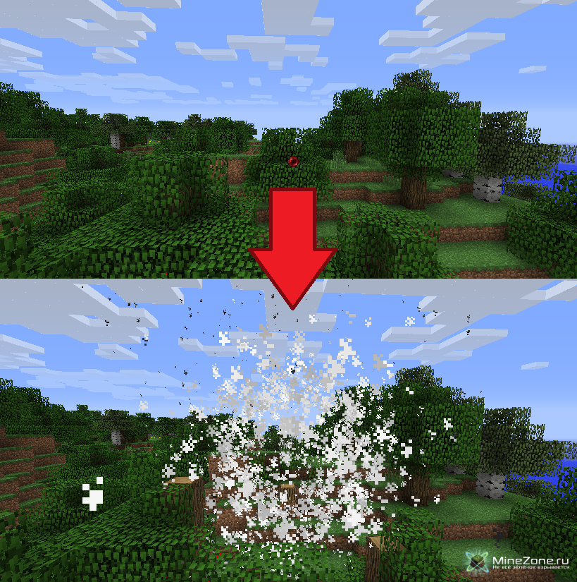 Этот предмет, казалось бы, ничем не отличается от любых других метательных сущностей, в частности, снежков и яиц. Однако, при его приземлении, происходит громадный взрыв, убивающий/ранящий близлежащих мобов и разрушающий ландшафт не хуже связки TNT.