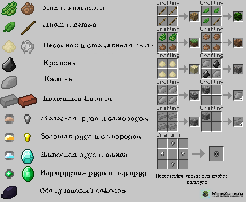 Мод позволит пересмотреть взгляды на добычу некоторых блоков. Теперь из них будут дропаться не блоки собственной персоной, а их составляющие, из которых потом можно будет воссоздать блок.